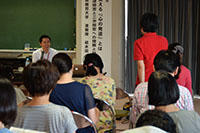 渡部先生からは,即時的認知能力の重要性と,指導の際にいかに飽きさせないで練習をさせていくかが大切であるとの話がありました。色そろばんを使っての演習では,足し算・引き算を体験した後,かけ算・わり算指導の前段階である倍数の体験や半分の数の体験も行いました。