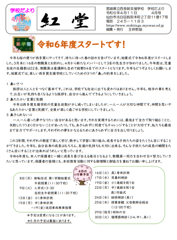 ホーム学校紹介 学校の特徴教育目標児童生徒数・職員数教育課程と学級名学校評価学校行事校章・校歌・校木学校沿革小学部 小学部の紹介new行事紹介(1学期)行事紹介(2学期)中学部 中学部の紹介高等部 高等部の紹介高等部入学者選考(知的障害)高等部入学者選考(病弱)教育相談(地域支援)文化祭進路について校内研究 おたより 学校だより「紅堂」保健だより北海道東北病連のホームページサイトマップ