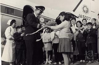 昭和38年4月29日、ベッドスクールの子供たち50名が、麻田機長さんみずから操縦する旅客機に乗って仙台・松島上空を遊覧飛行しました。