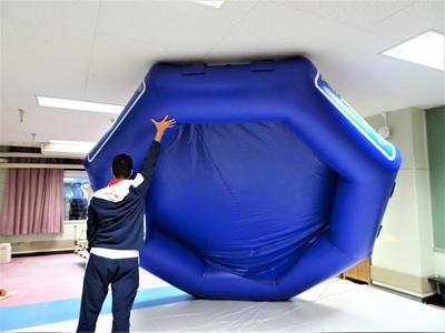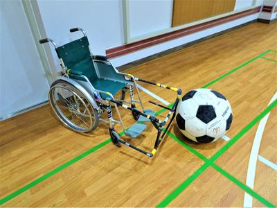 | 車いすサッカー(ガード&ボール) 手動,電動のどちらにもつけられるガードです。生徒の車いすの大きさに合わせて,一つ一つ手作りですので,お貸しすることは出来ませんが,作り方や車いすサッカーの楽しみ方をお伝えすることが出来ます。ボールはお貸しできます(2個) |