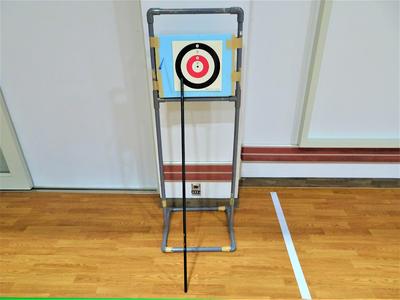 | スポーツ吹き矢 吹き筒は10本,矢は5セットあります。的は手作り品ですが5つあります。的枠の上からつるすことで,的の高さは変えられます。的となる紙と,吹き口はお貸しすることは出来ません。 |