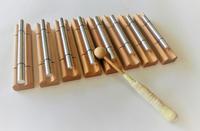 ラウンドベル 直径25cmの丸型の楽器です。 回転させてバチを当てると華やかな音が鳴ります。1音ずつ鳴らすことも可能です。 |